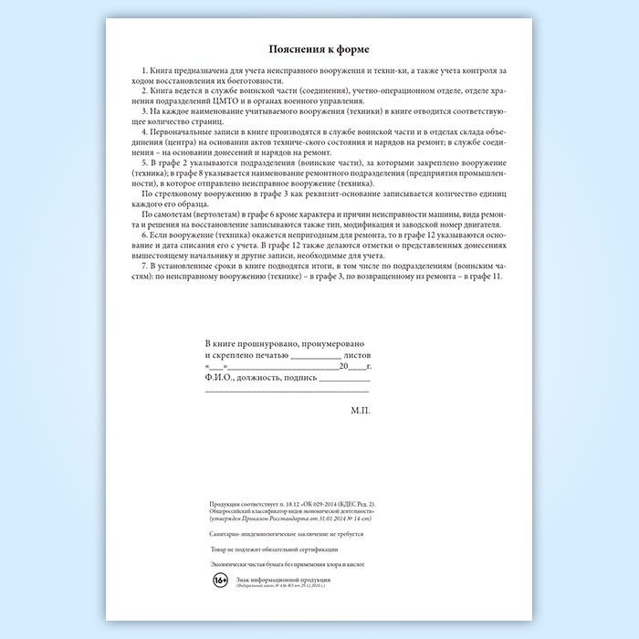 Книга учета неисправного вооружения и военной техники (форма 19) в Твери купить