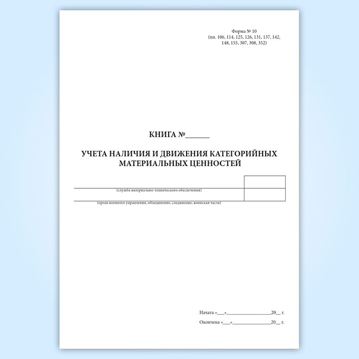 Книга учета наличия и движения категорийных материальных ценностей (форма 10) в Твери купить