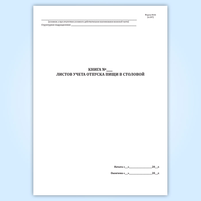 Книга листов учета отпуска пищи в столовой (форма 34) в Твери купить