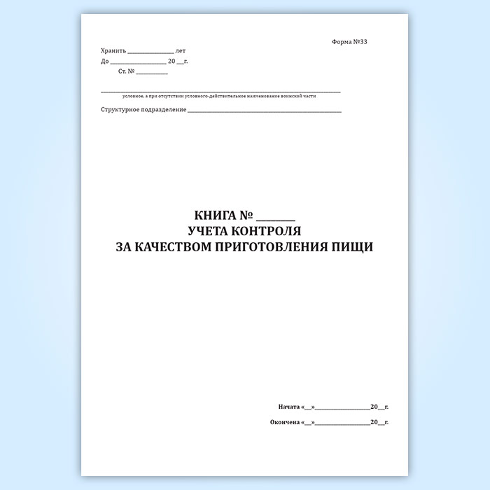 Книга учета контроля за качеством приготовления пищи (форма 33) в Твери купить