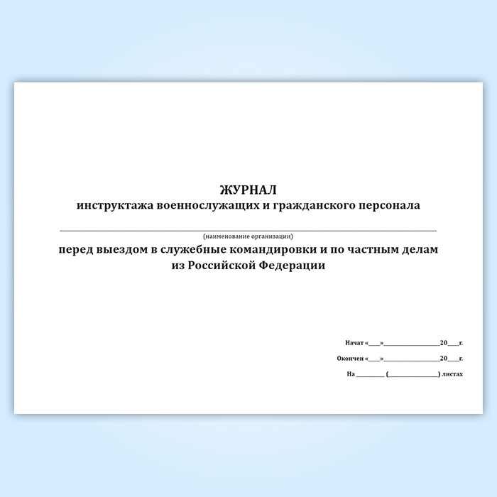 Журнал инструктажа военнослужащих и гражданского персонала перед выездом в служебные командировки и по частным делам из Российской Федерации в Твери купить