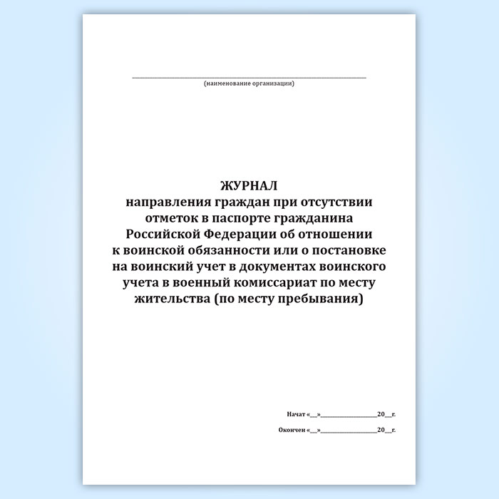 Журнал направления граждан при отсутствии отметок в паспорте гражданина Российской Федерации об отношении к воинской обязанности или о постановке на воинский учет в документах воинского учета в военный комиссариат по месту жительства (по месту пребывания) в Твери купить