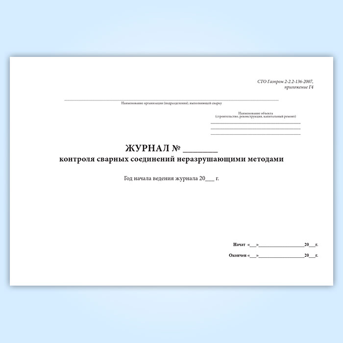 Журнал контроля сварных соединений неразрушающими методами в Твери купить