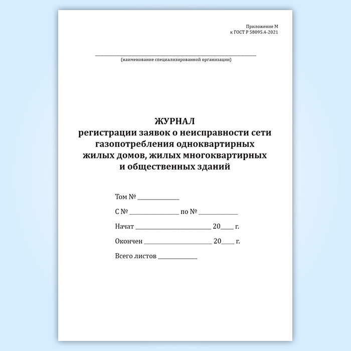 Журнал регистрации заявок о неисправности сети газопотребления одноквартирных жилых домов, жилых многоквартирных и общественных зданий в Твери купить