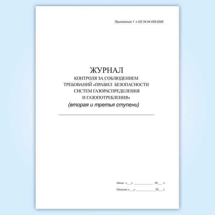 Журнал контроля за соблюдением требований Правил безопасности систем газораспределения и газопотребления (вторая и третья ступени) в Твери купить