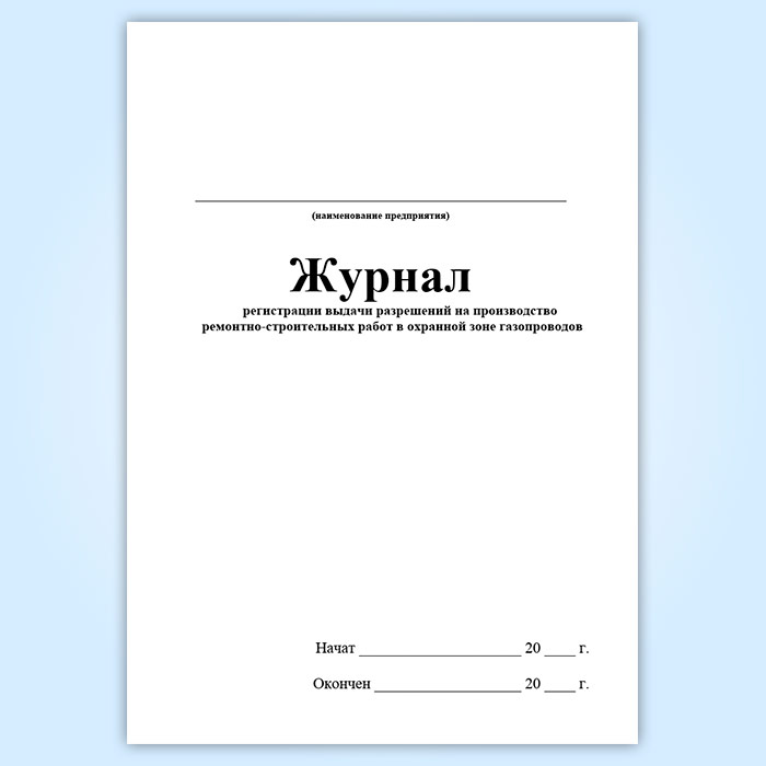 Журнал регистрации выдачи разрешений на производство ремонтно-строительных работ в охранной зоне газопроводов (ГЭГ-14) в Твери купить