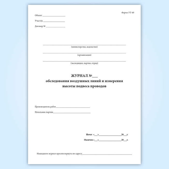 Журнал обследования воздушных линий и высоты подвеса проводов (форма УТ-40) в Твери купить