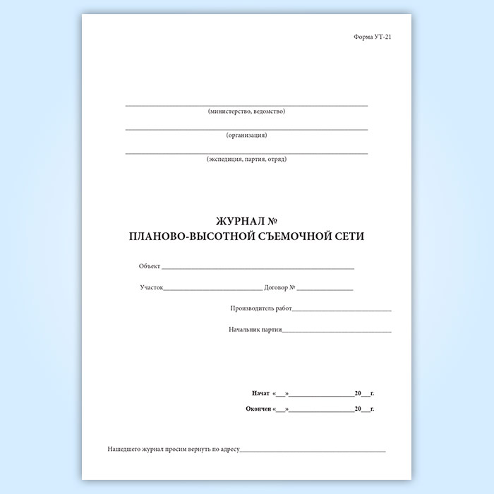Журнал планово-высотной съемочной сети (форма УТ-21) в Твери купить