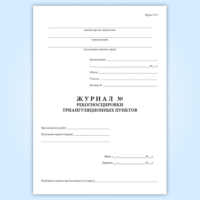 Журнал рекогносцировки триангуляционных пунктов (форма УТ-1) в Твери купить