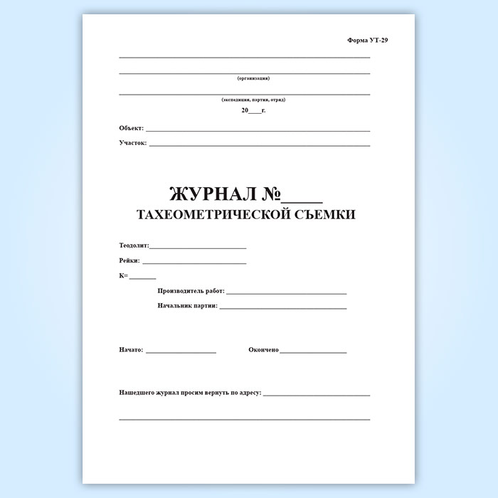 Журнал тахеометрической съемки (форма УТ-29) в Твери купить