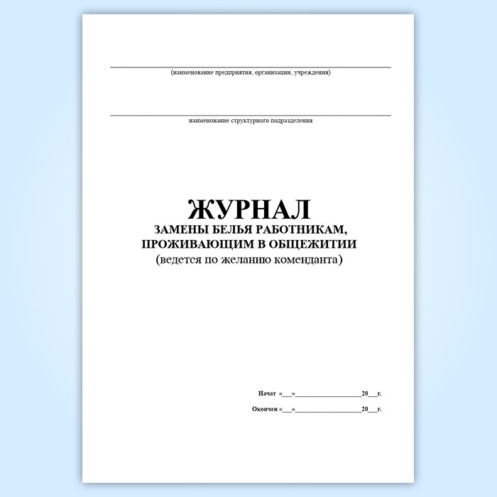 Журнал замены белья работниками, проживающими в общежитии в Твери купить
