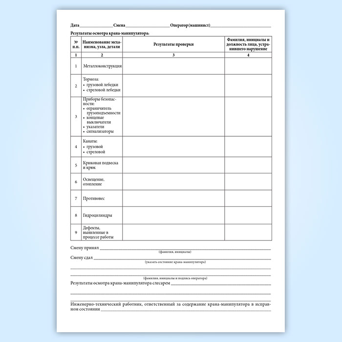 Вахтенный журнал приема-сдачи смен машинистами крана-манипулятора в Твери купить
