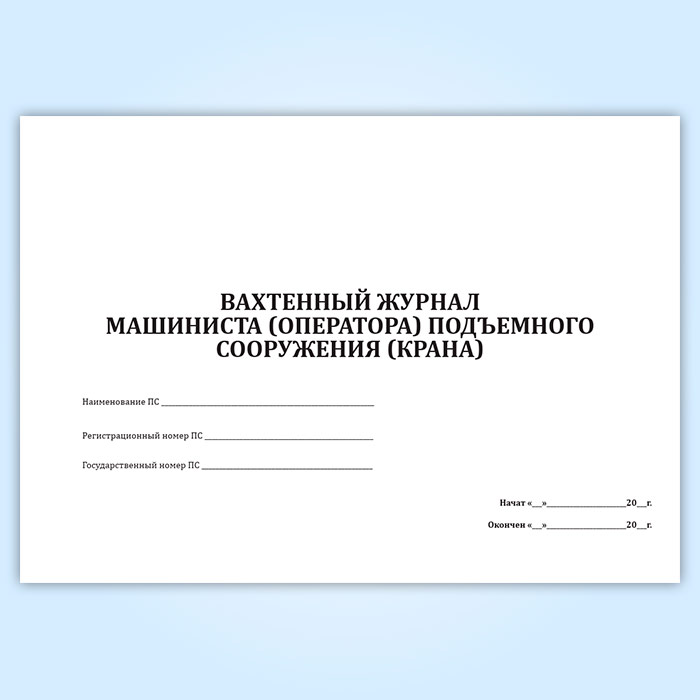 Вахтенный журнал машиниста (оператора) подъемного сооружения (крана) в Твери купить
