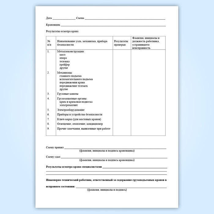 Вахтенный журнал крановщика (кранов мостового типа) в Твери купить
