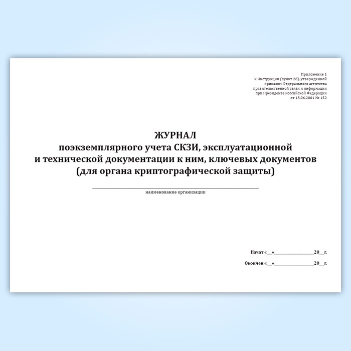 Журнал поэкземплярного учета СКЗИ, эксплуатационной и технической документации к ним, ключевых документов (для органа криптографической защиты) в Твери купить