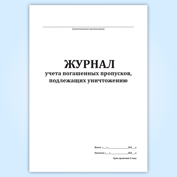 Журнал учета погашенных пропусков, подлежащих уничтожению в Твери купить