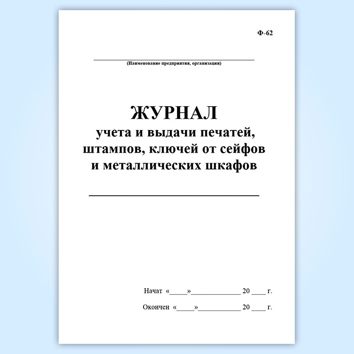 Журнал учета и выдачи печатей, штампов, ключей от сейфов и металлических шкафов (Ф-62) в Твери купить