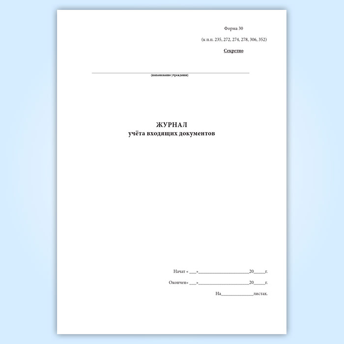 Журнал учета входящих документов (форма № 30) в Твери купить