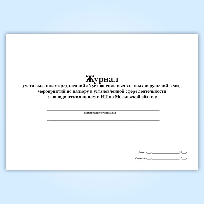 Журнал учета выданных предписаний об устранении выявленных нарушений в ходе мероприятий по надзору в установленной сфере деятельности за юридическим лицом и ИП по Московской области в Твери купить