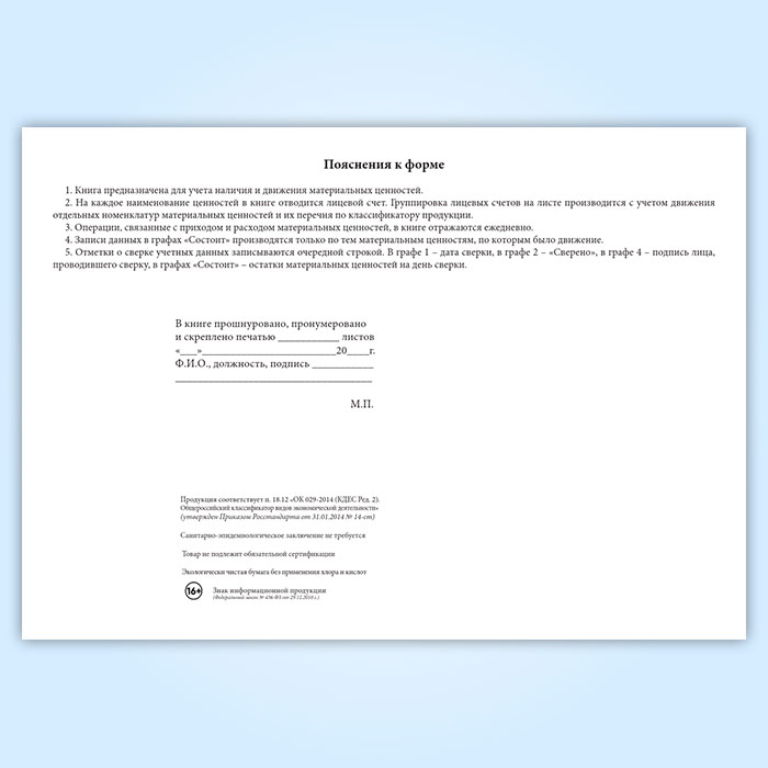 Вы получаете печатную продукцию прошнурованной и c местом для вашей печати в соответствии с действующими нормативными документами: