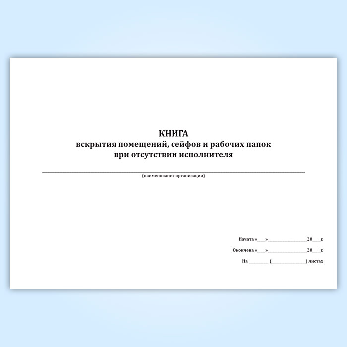 Книга вскрытия помещений, сейфов и рабочих папок при отсутствии исполнителя в Твери купить