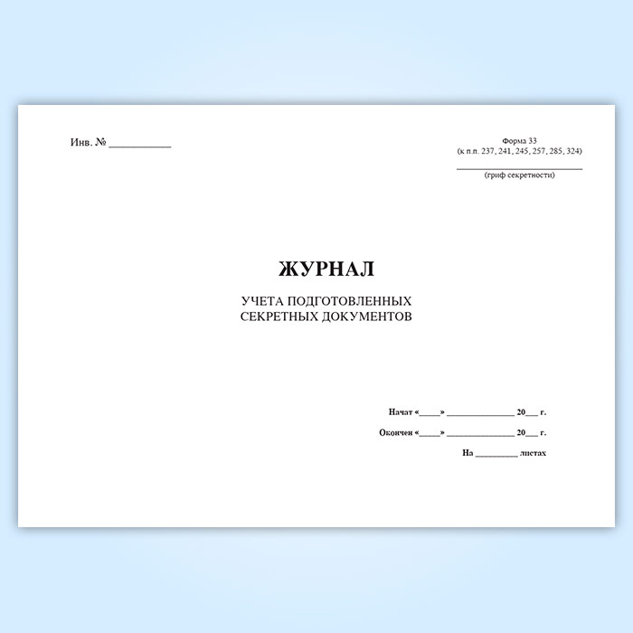 Журнал учета подготовленных секретных документов (форма 33) в Твери купить