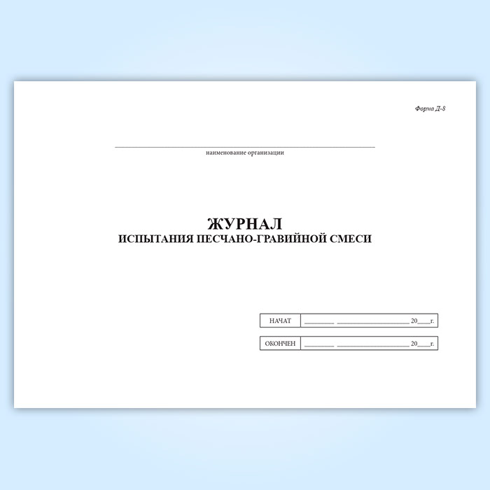 Журнал испытания песчано-гравийной смеси (форма Д-8) в Твери купить