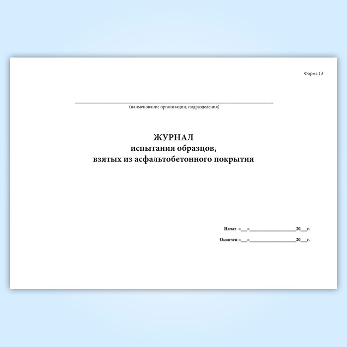 Журнал испытания образцов, взятых из асфальтобетонного покрытия (форма 13) в Твери купить