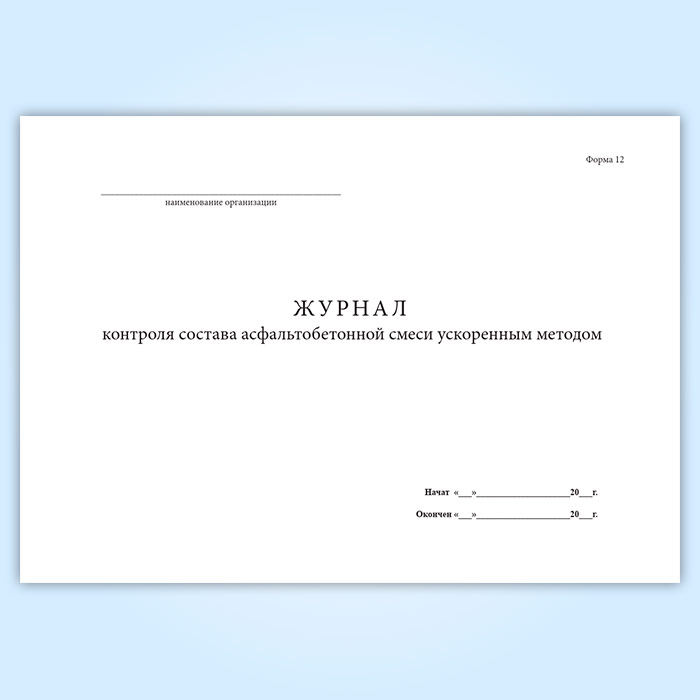 Журнал контроля состава асфальтобетонной смеси ускоренным методом (форма 12) в Твери купить