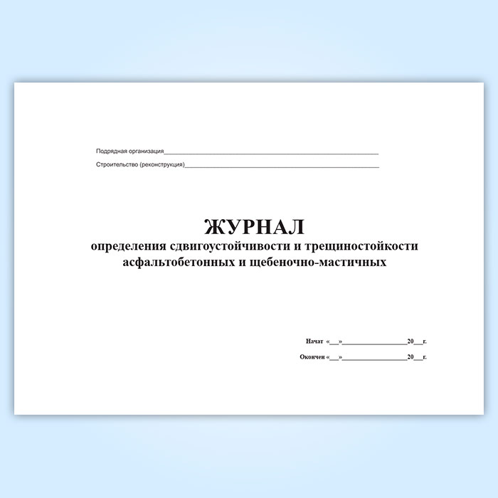 Журнал определения сдвигоустойчивости и трещиностойкости асфальтобетонных и щебеночно-мастичных покрытий в Твери купить