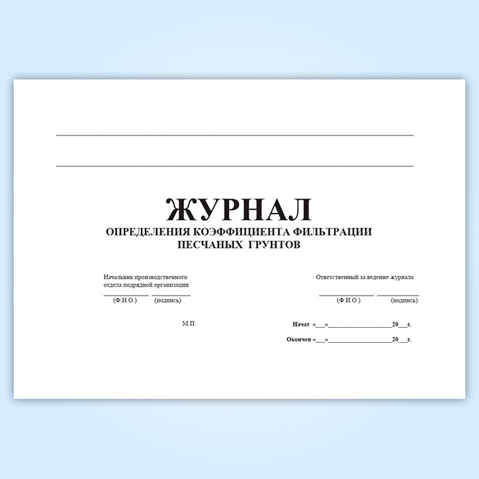 Журнал определения коэффициента фильтрации песчаных грунтов в Твери купить