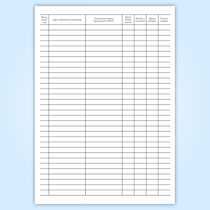 Журнал учета выдачи ключей от технических помещений, контролируемых ОДС в Твери купить