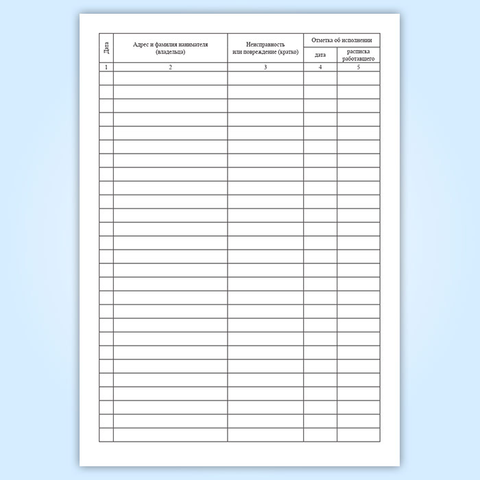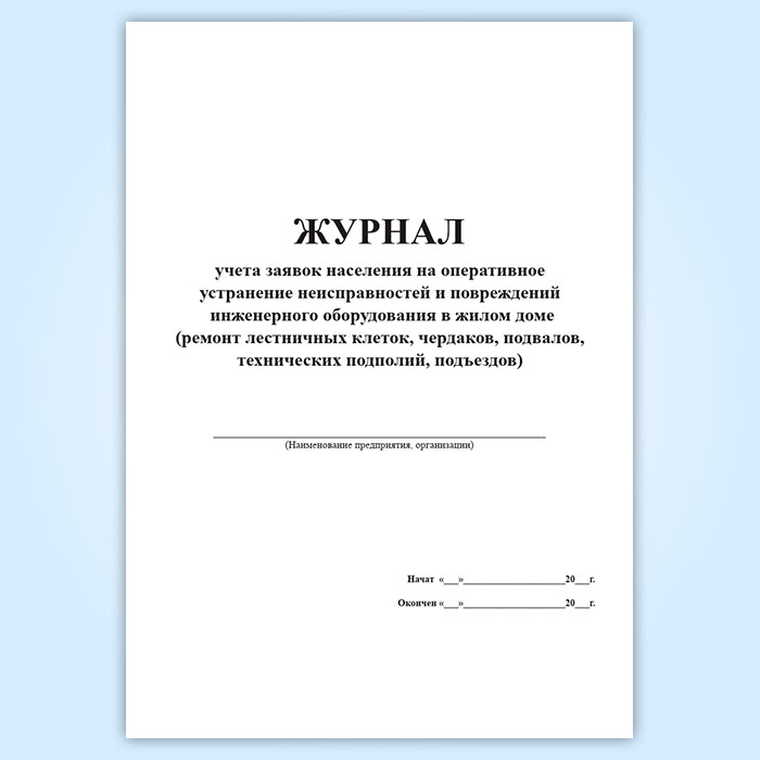 Журнал учета заявок населения на оперативное устранение неисправностей и повреждений инженерного оборудования в жилом доме ремонт лестничных клеток, чердаков, подвалов, технических подполий, подъездов в Твери купить