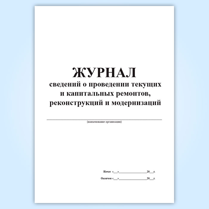 Журнал сведений о проведении текущих и капитальных ремонтов, реконструкций и модернизаций в Твери купить