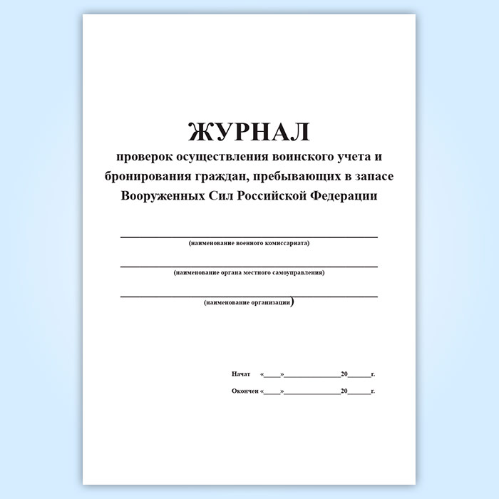Журнал проверок осуществления воинского учета и бронирования граждан, пребывающих в запасе Вооруженных Сил Российской Федерации в Твери купить