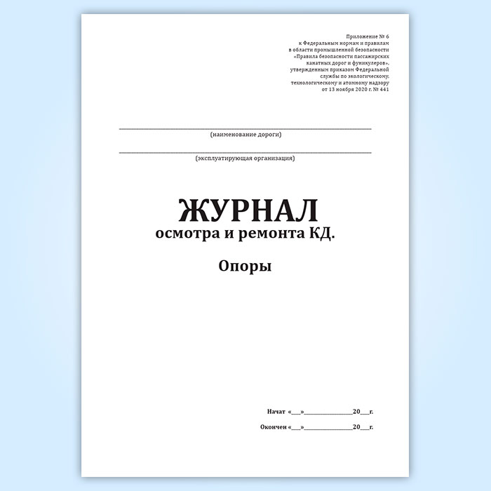 Журнал осмотра и ремонта канатной дороги. Опоры (форма № 6) в Твери купить
