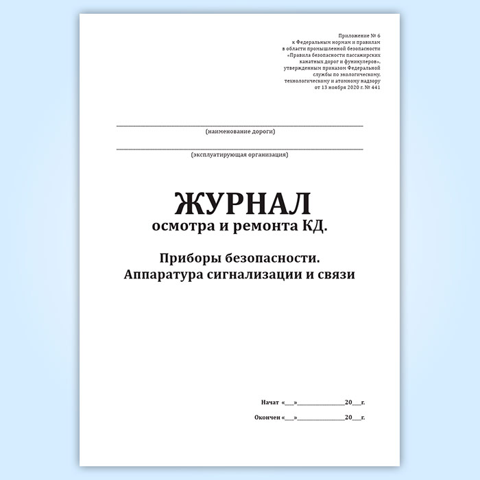Журнал осмотра и ремонта канатной дороги. Приборы безопасности. Аппаратура сигнализации и связи (форма № 9) в Твери купить