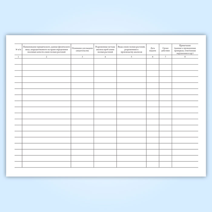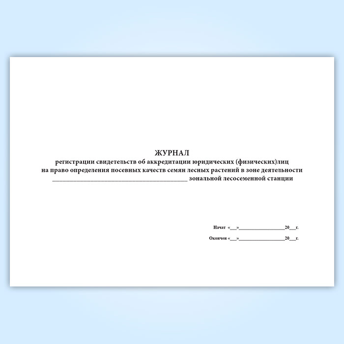 Журнал регистрации свидетельств об аккредитации юридических (физических) лиц на право определения посевных качеств семян лесных растений в зоне деятельности зональной лесосеменной станции в Твери купить