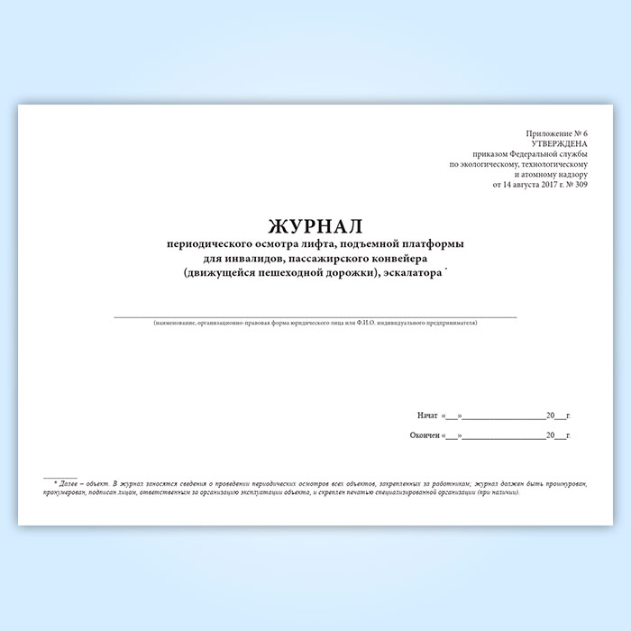 Журнал периодического осмотра лифта, подъемной платформы для инвалидов, пассажирского конвейера (движущейся пешеходной дорожки), эскалатора в Твери купить