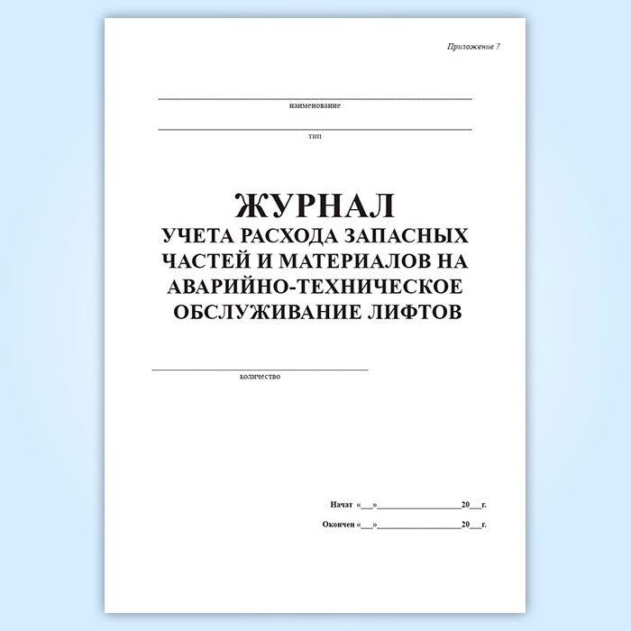 Журнал учета расхода запасных частей и материалов на аварийно-техническое обслуживание лифтов в Твери купить