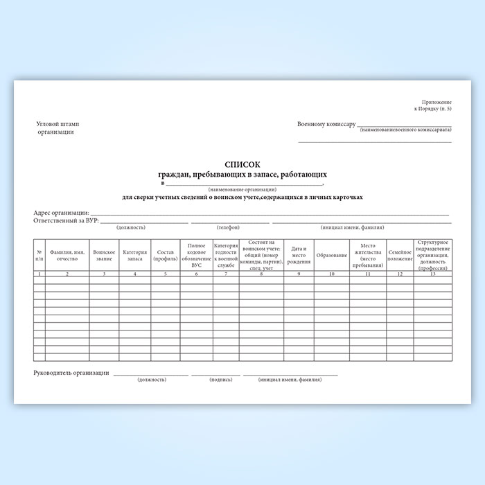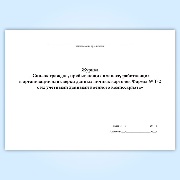 Журнал «Список граждан, пребывающих в запасе, работающих в организации для сверки данных личных карточек Формы № Т-2 с их учетными данными военного комиссариата» в Твери купить