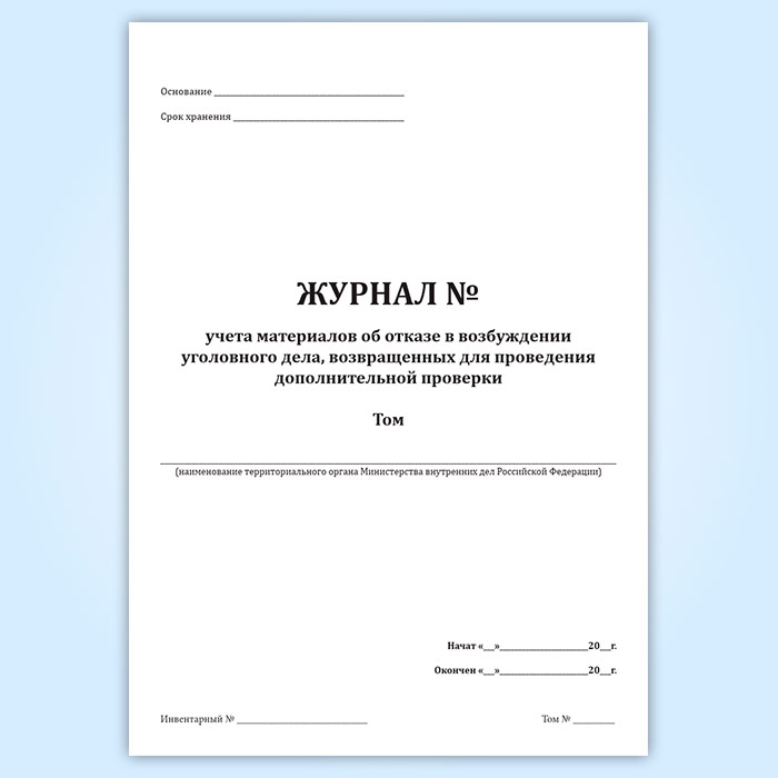 Журнал учета материалов об отказе в возбуждении уголовного дела, возвращенных для проведения дополнительной проверки в Твери купить