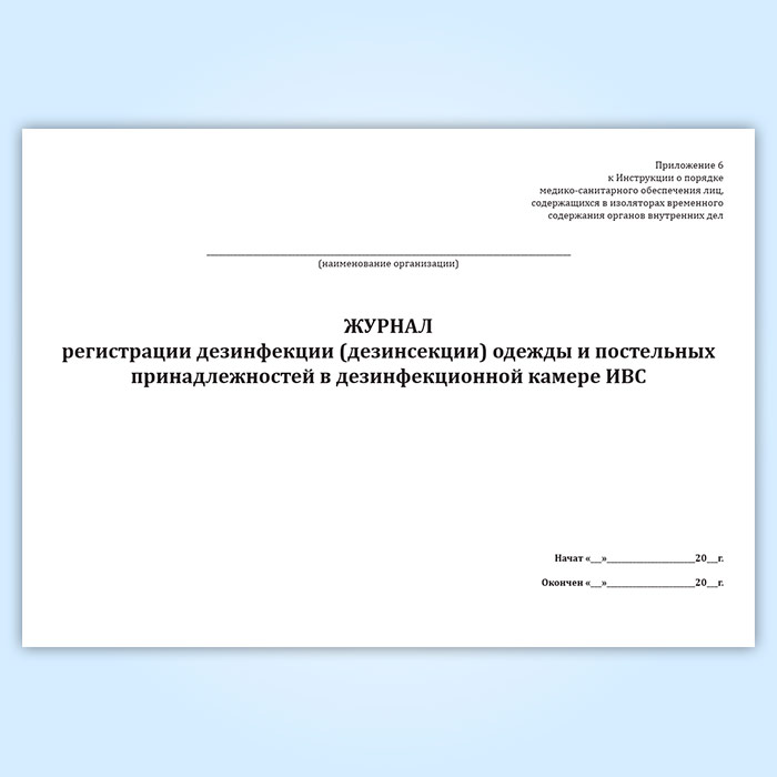 Журнал регистрации дезинфекции (дезинсекции) одежды и постельных принадлежностей в дезинфекционной камере ИВС в Твери купить