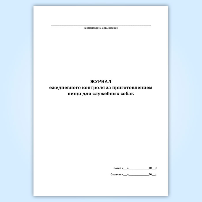 Журнал ежедневного контроля за приготовлением пищи для служебных собак в Твери купить