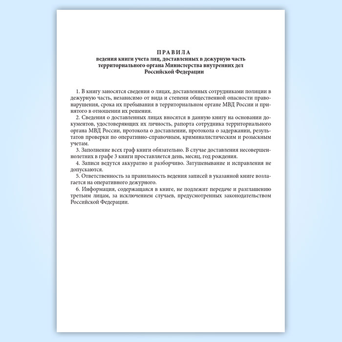Книга учета лиц, доставленных в дежурную часть территориального органа МВД РФ в Твери купить