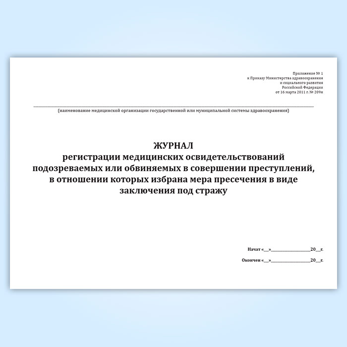 Журнал регистрации медицинских освидетельствований подозреваемых или обвиняемых в совершении преступлений, в отношении которых избрана мера пресечения в виде заключения под стражу в Твери купить