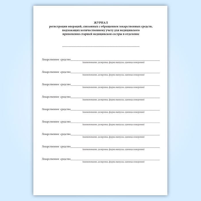 Журнал регистрации операций, связанных с обращением лекарственных средств, подлежащих количественному учету для медицинского применения старшей медицинской сестры в отделение в Твери купить