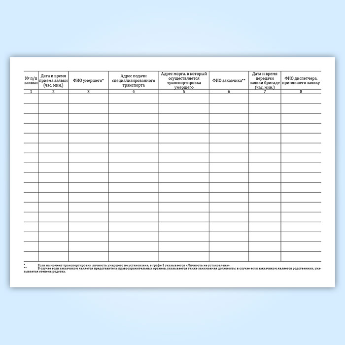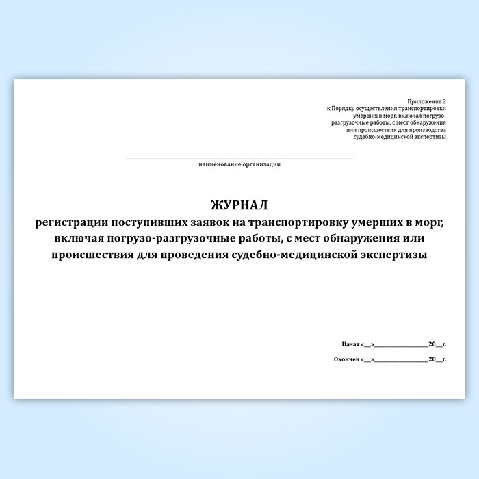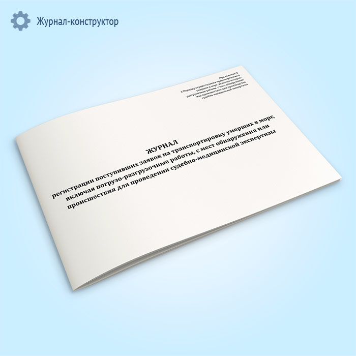 Журнал регистрации поступивших заявок на транспортировку умерших в морг, включая погрузо-разгрузочные работы, с мест обнаружения или происшествия для проведения судебно-медицинской экспертизы в Твери купить
