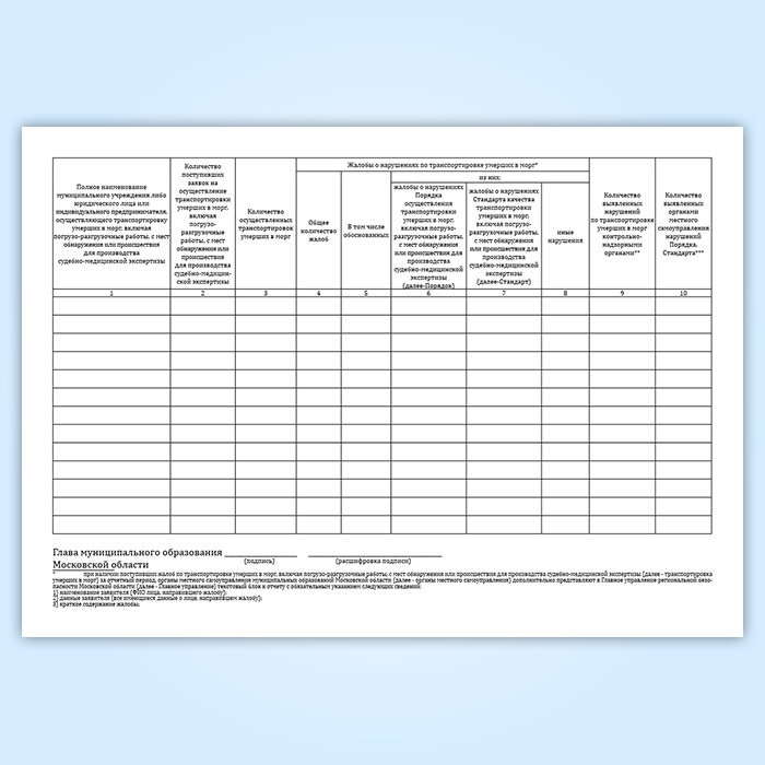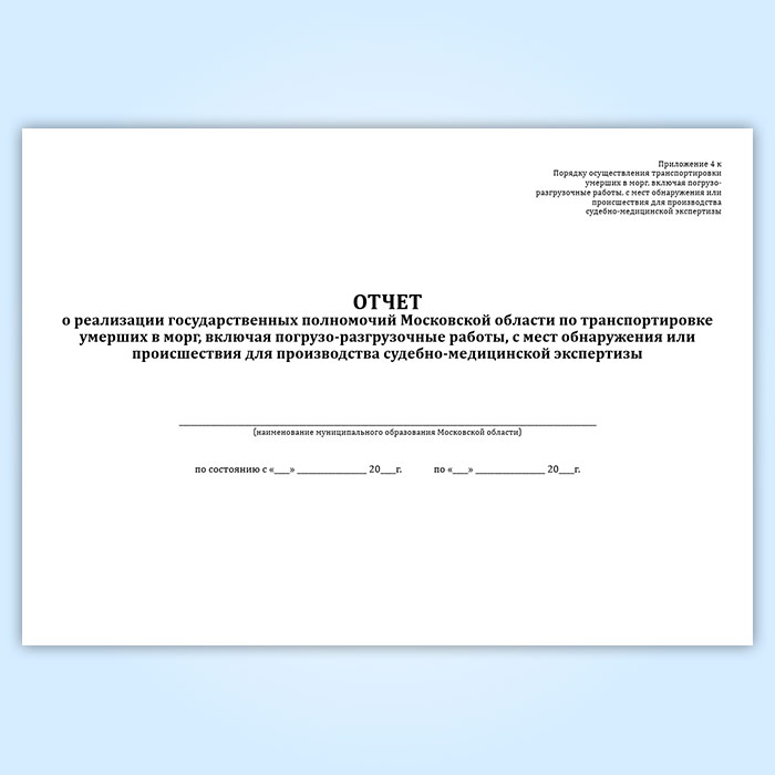Отчет о реализации государственных полномочий Московской области по транспортировке умерших в морг, включая погрузо-разгрузочные работы, с мест обнаружения или происшествия для производства судебно-медицинской экспертизы в Твери купить