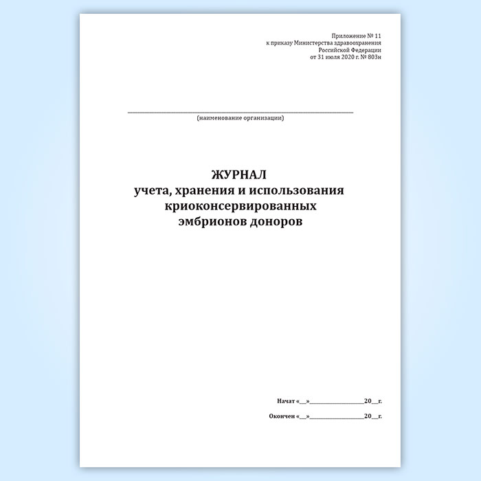 Журнал учета, хранения и использования криоконсервированных эмбрионов доноров в Твери купить